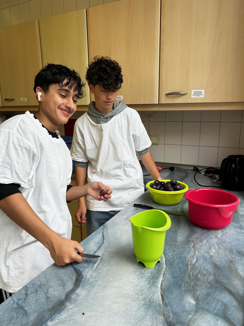 Wir alle wurden in verschiedene Gruppen aufgeteilt und haben Apfel- und Pflaumenkuchen gebacken, Sandwiches, Gemüsesticks mit verschiedenen Dips und Couscoussalat hergestellt.